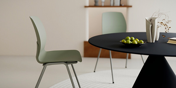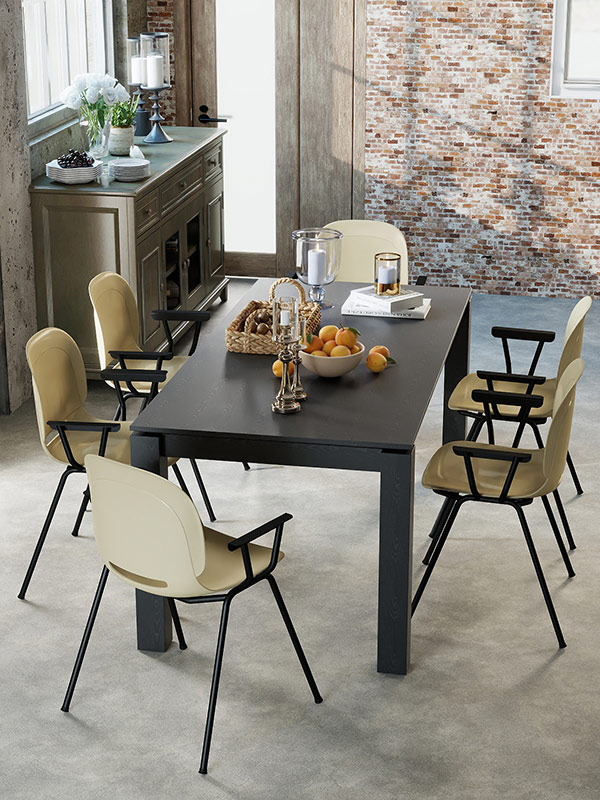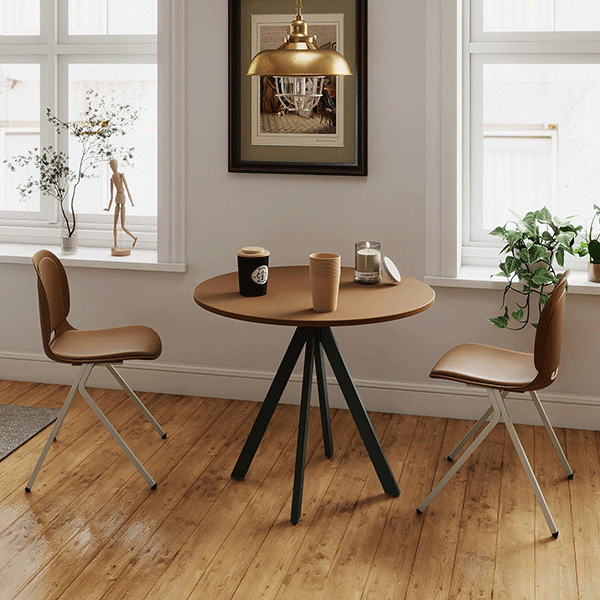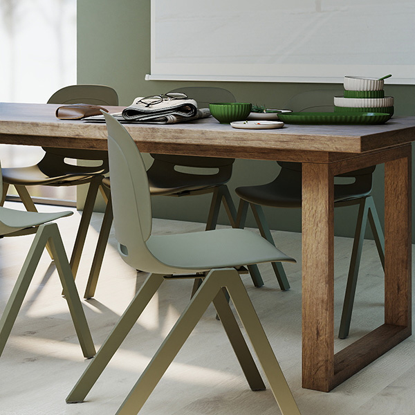 Seamlessly transitions across diverse environments, from desk work to dynamic collaboration and casual dining.